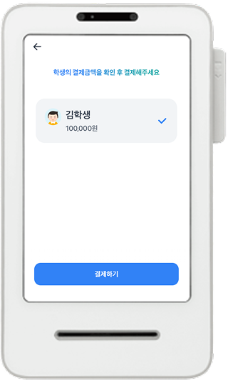 “입구에 설치하고 나니 확실히 아이들이 쉽게 출석체크를 할 수 있게 되었습니다. 게다가 입구 앞이라 학부모님들께서 신발 벗고 들어오지 않고도 쉽게 결제가 가능합니다. 학원이 세련되진 기분이에요^^”